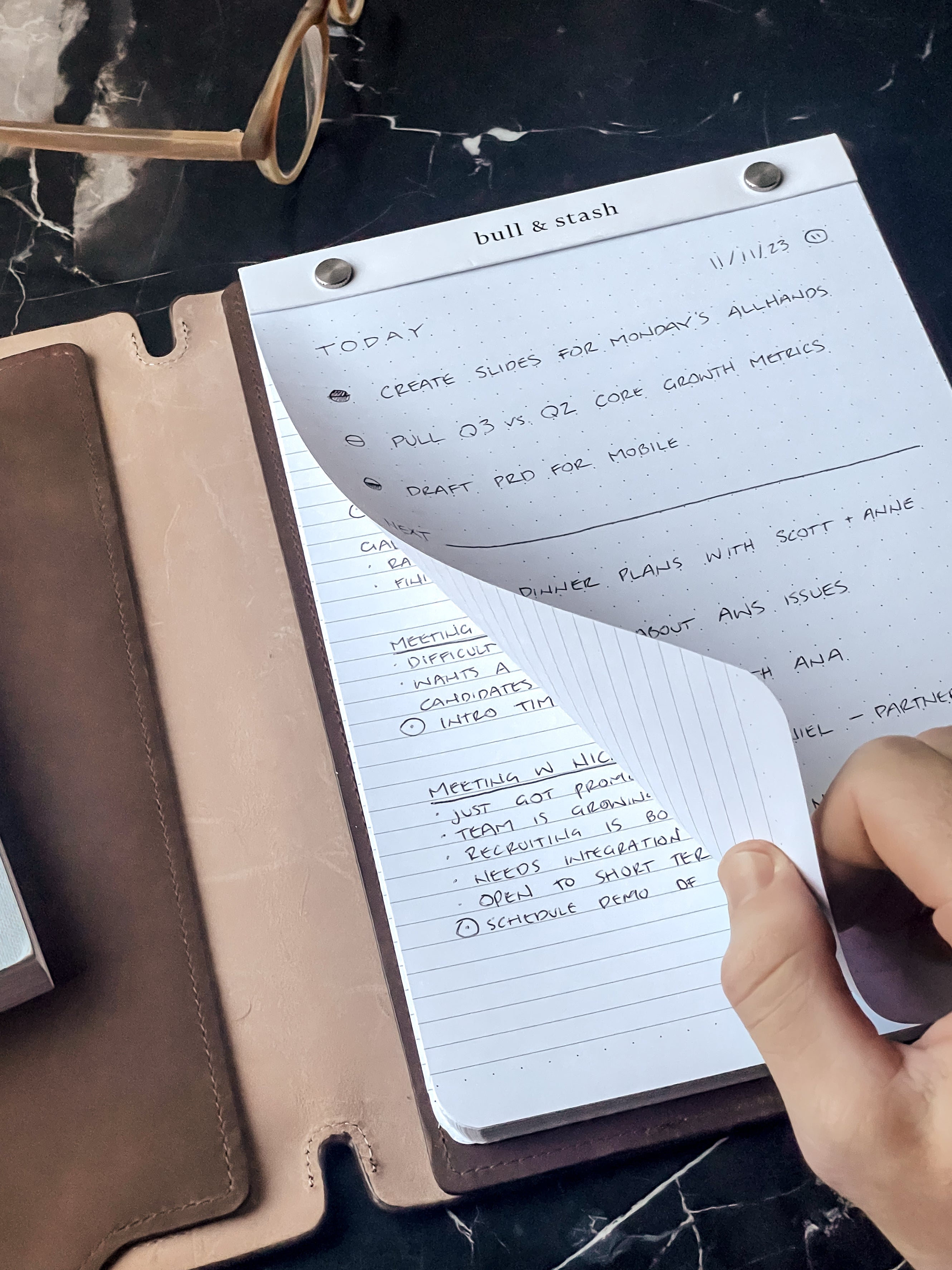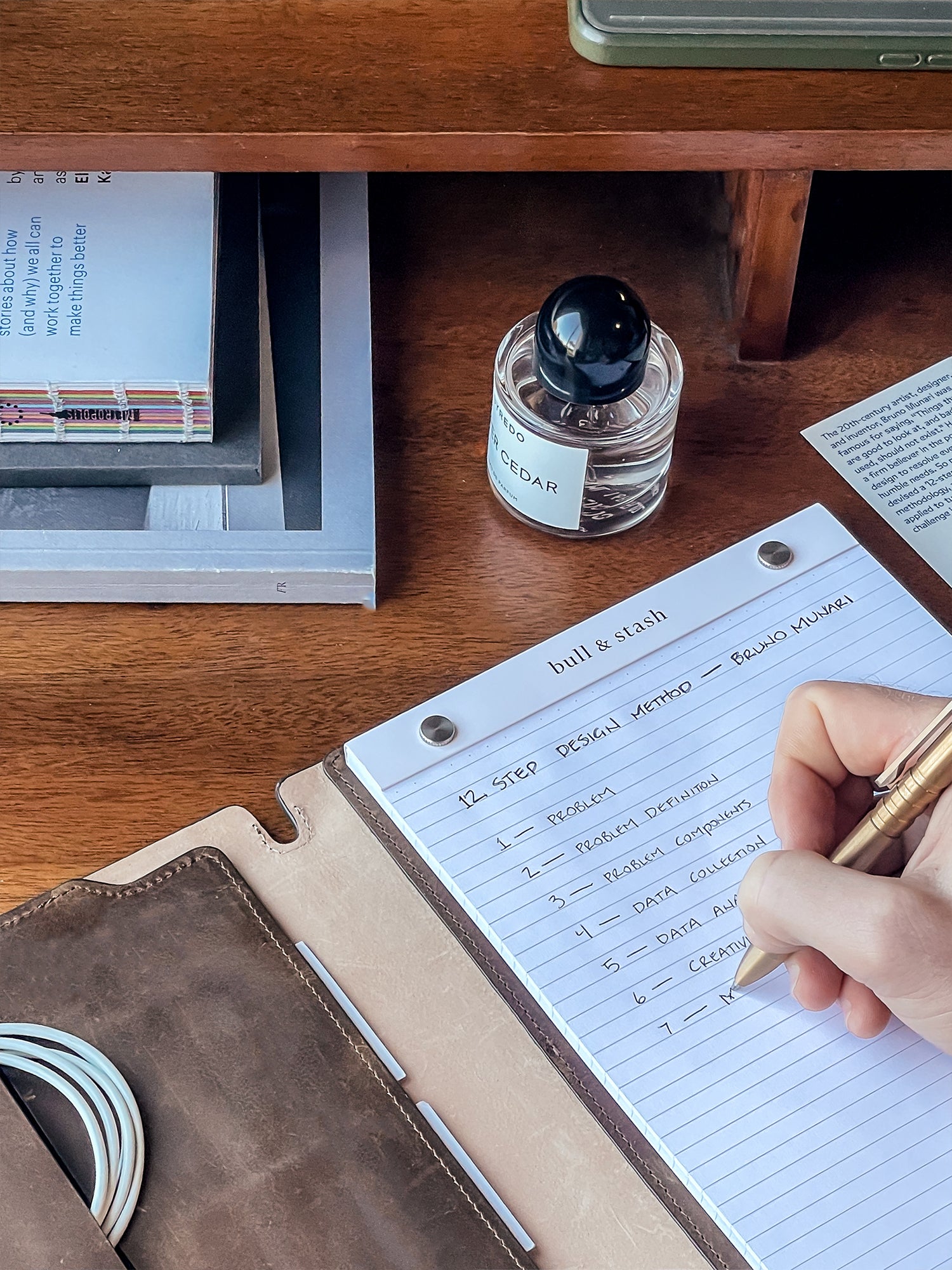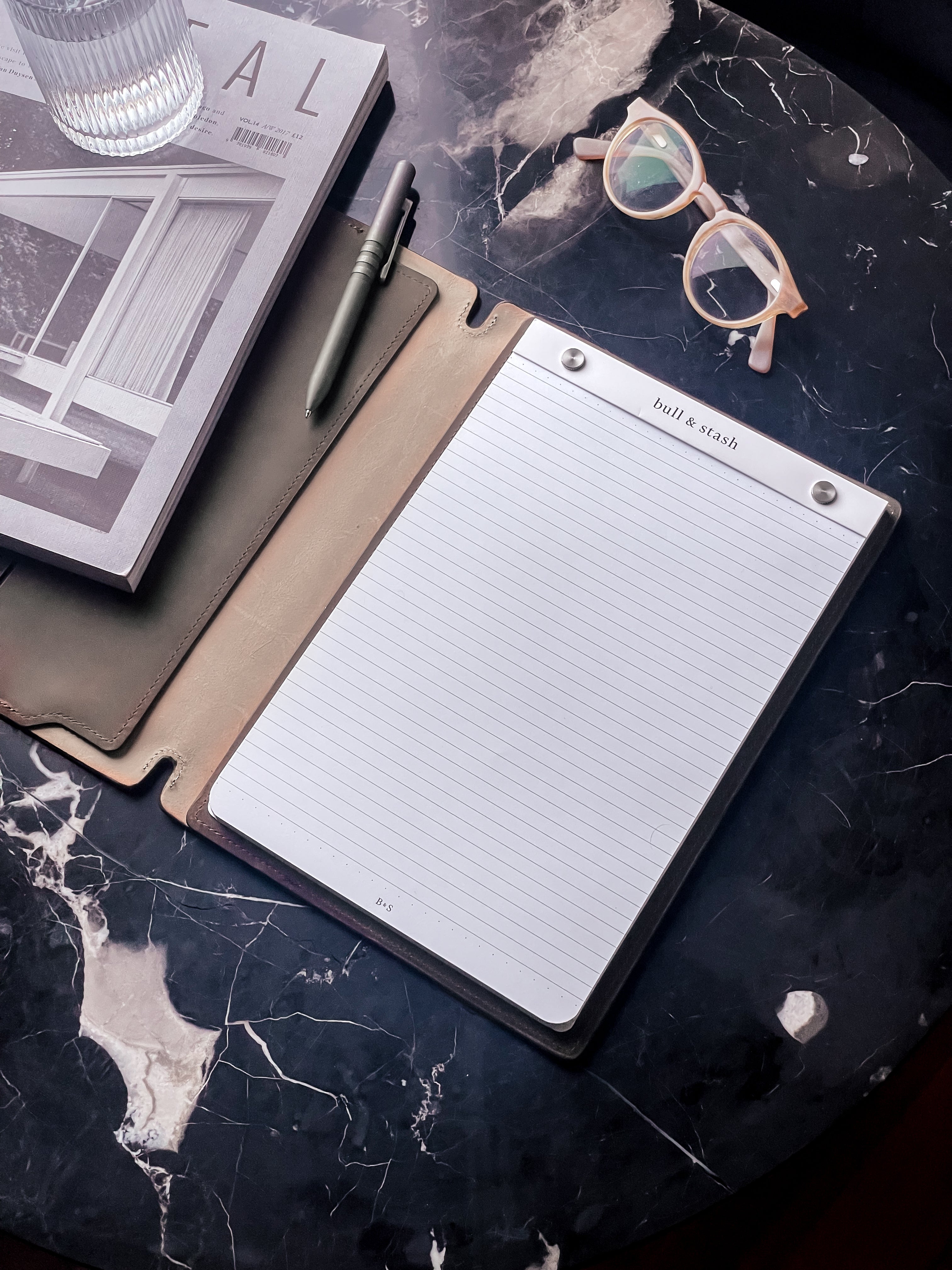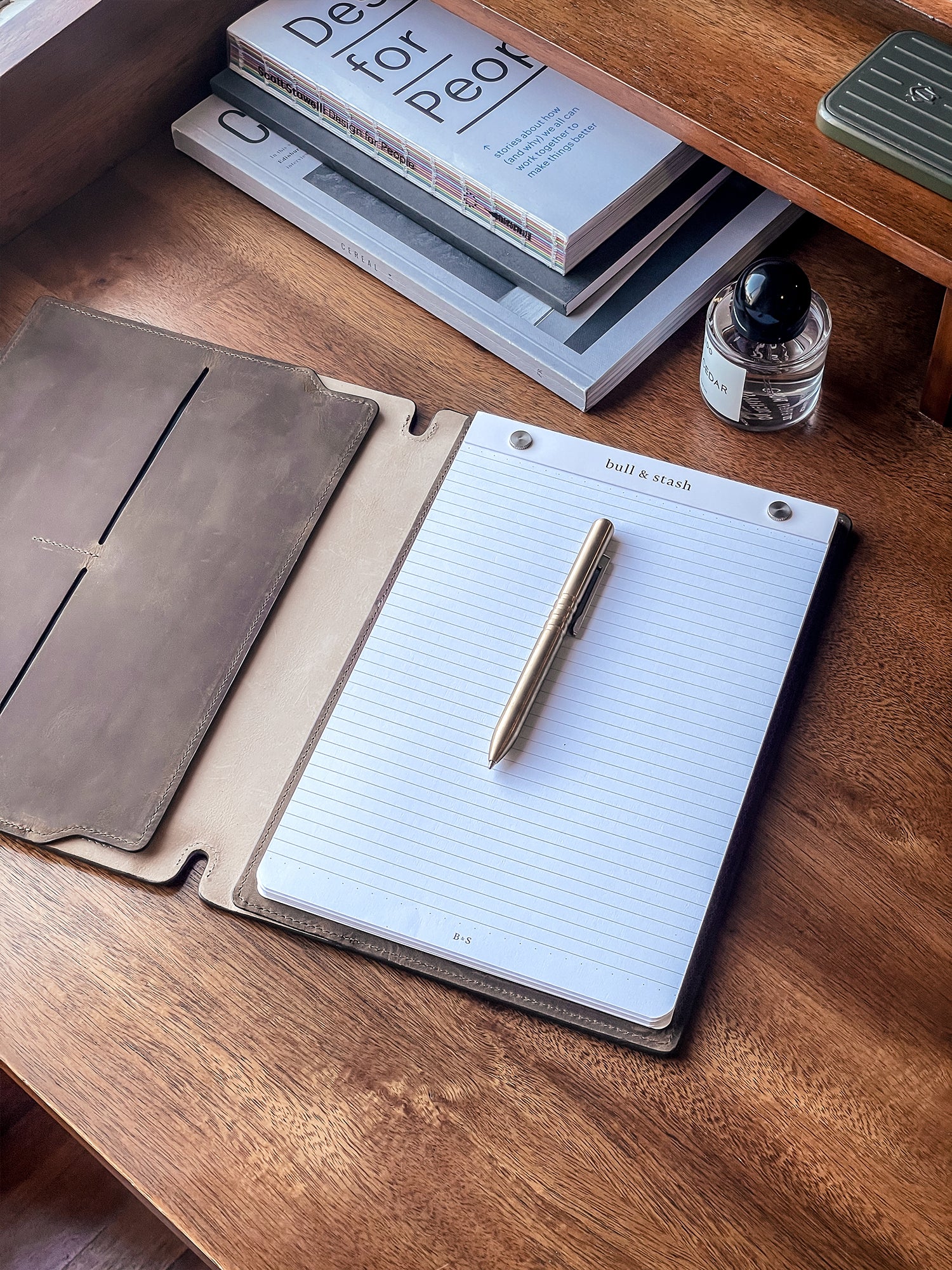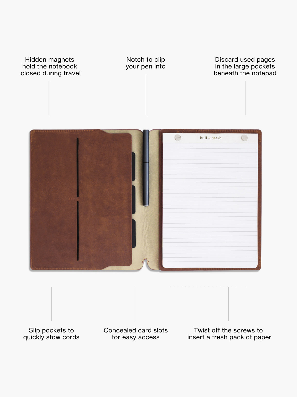 The Allison was designed with our philosophy of "buy once, use forever." From the premium leather, to the thick, refillable pages, we've made it our mission to create the perfect notebook.