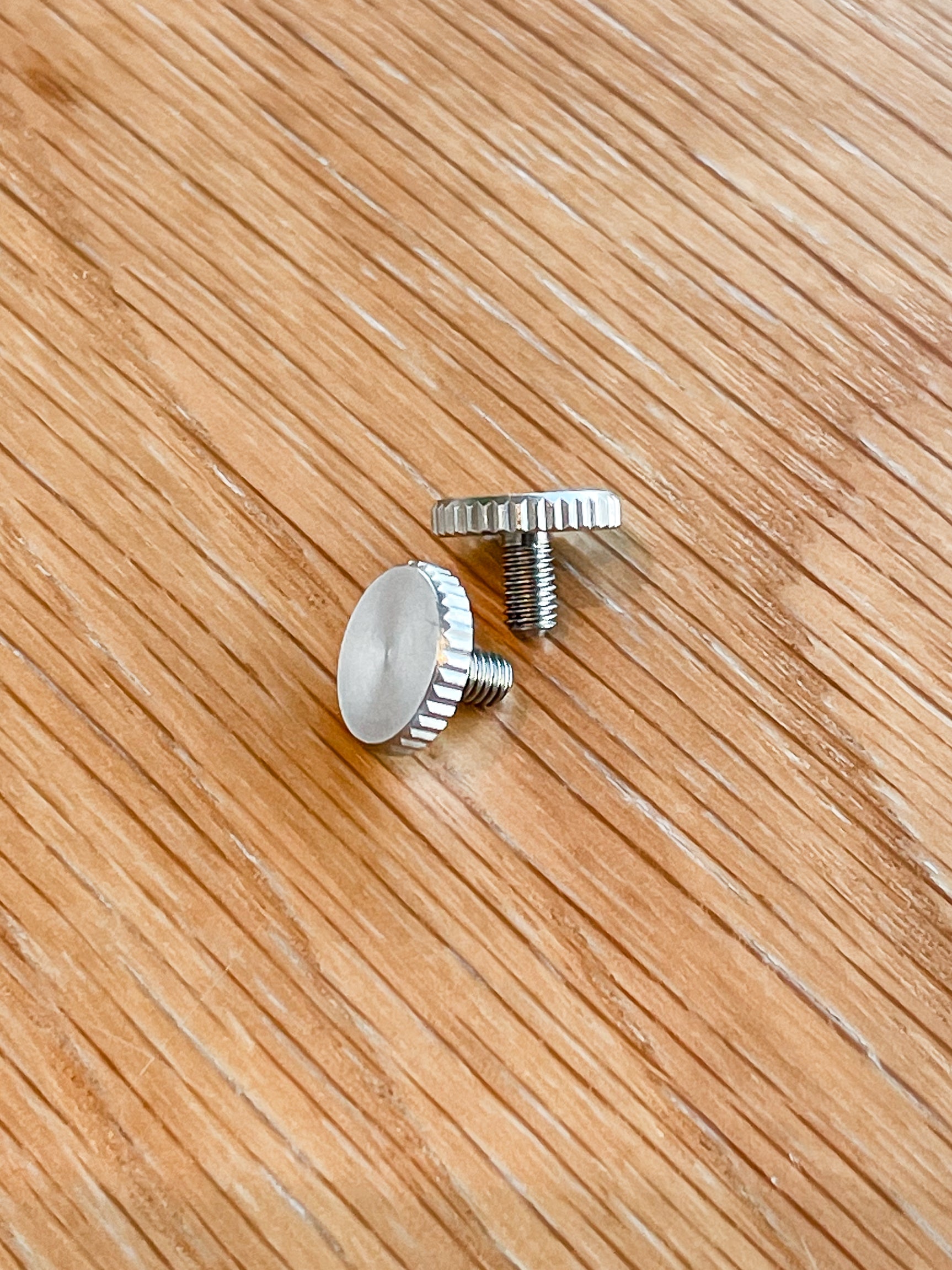 Easily twist off the screws to insert new pages. Machined out of 316L stainless steel to last over thousands of turns.