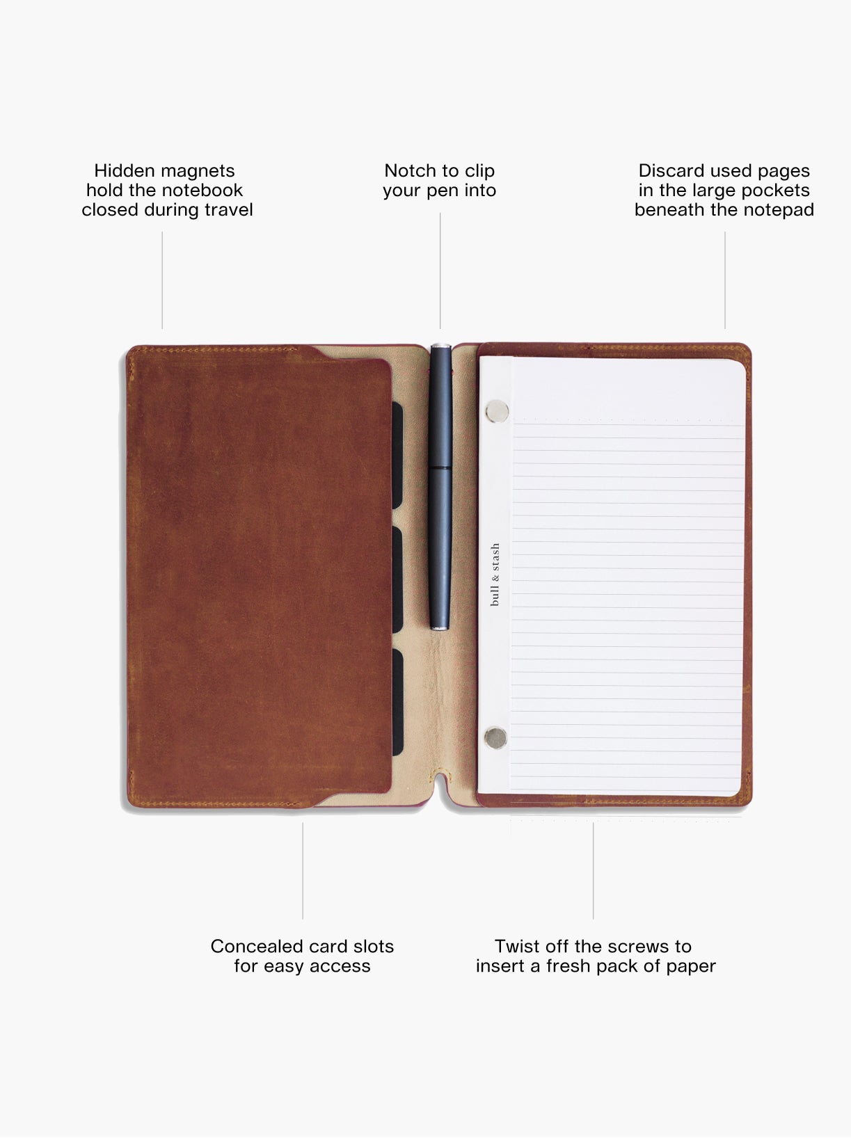 The Leonard was designed with our philosophy of "buy once, use forever." From the premium leather, to the thick, refillable pages, we've made it our mission to create the perfect notebook.
